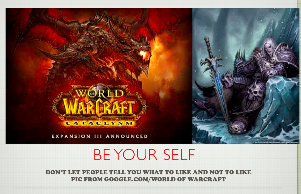 *World of Warcraft has given me a great inspirational source, for my writing they have created many books that Describe a fictional world also they have created many tabletop games, Where this source has a drawback they have worked on this for a very long time so it is harder to follow the story because of how much they have developed it and because so many things happen at the same time.