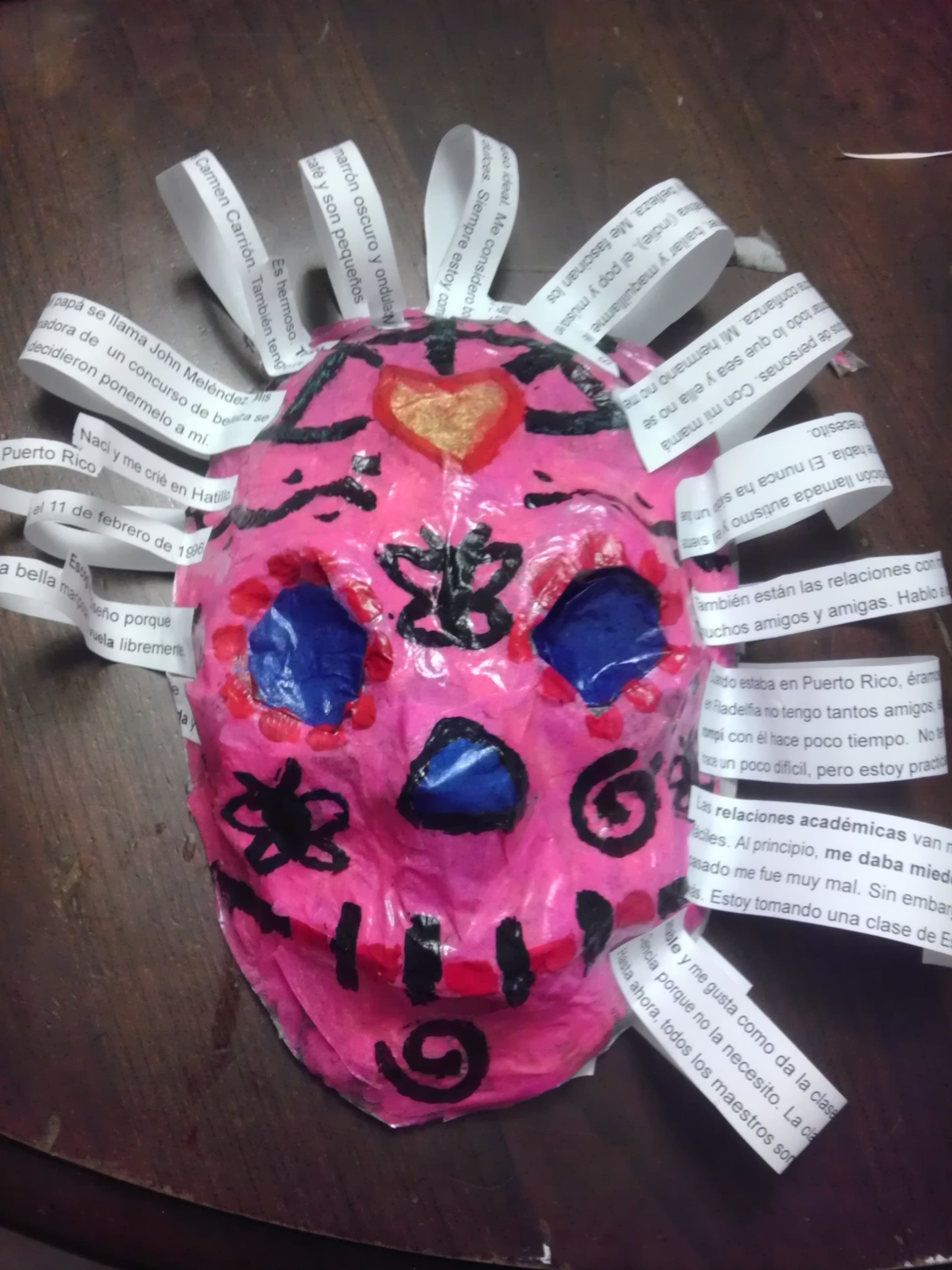 En fin, soy una chica muy carismática una vez me conoces bien. Mi máscara es de una caravela con muchos colores y diseños. Esta caravela representa lo introvertida y misteriosa que soy. Los colores y diseños representan mi pasión por los colores y el arte al igual que mi personalidad extrovertida una vez me conoces mejor. Uno de los diseños más grandes y llamativos será una mariposa. Escogí este diseño porque quiero ser como una oruga que pasa a ser una bella mariposa que vuela libremente.