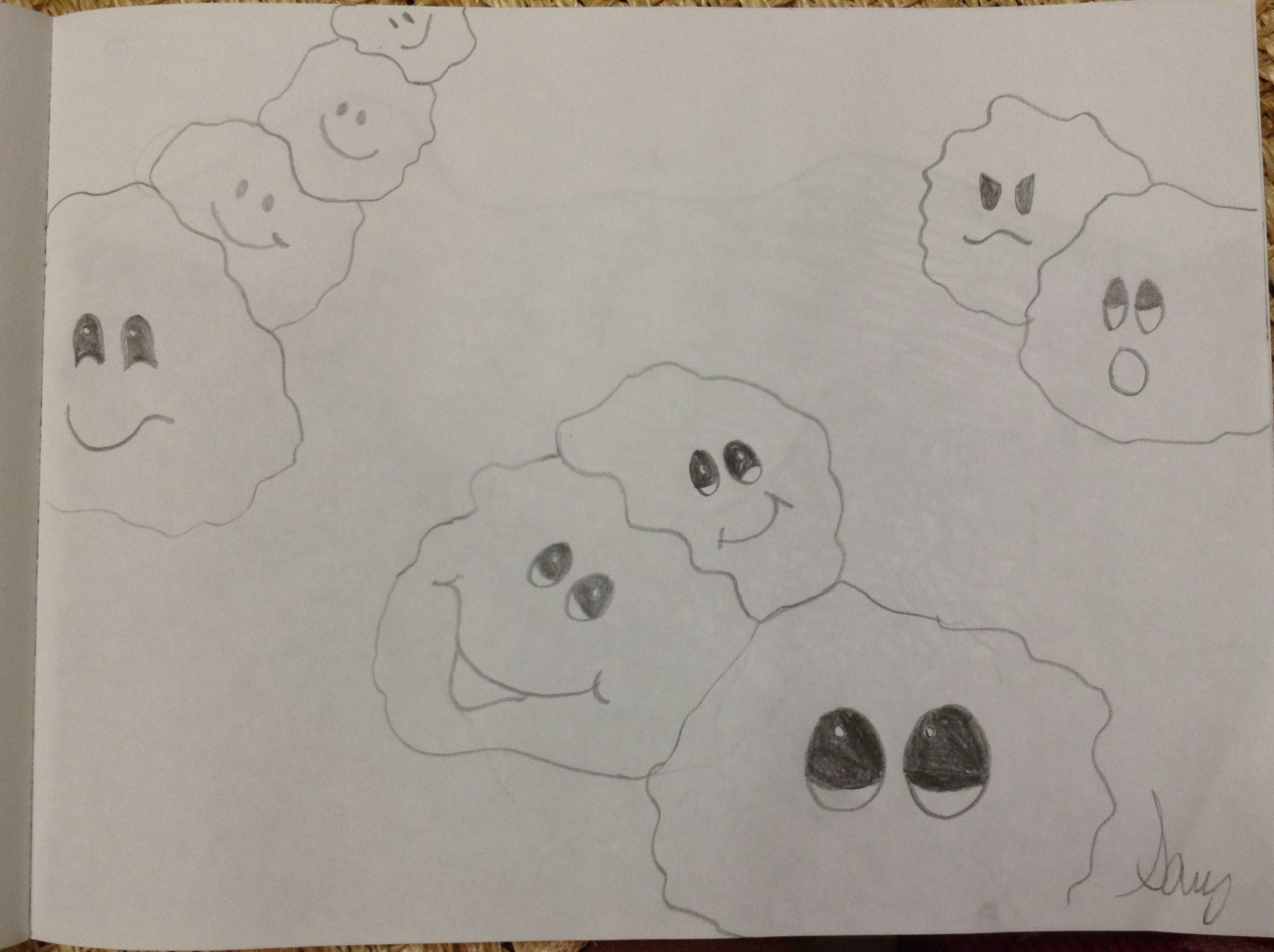 En ésta escuela hay gente que me cae bien y otra gente que no me cae tan bien. Pero así es el mundo y trato de llevarme bien con toda la gente que pueda. Me daba mucho miedo volver a la escuela y a la frustración que antes sentía, pero volví y estoy tratando lo más que puedo para graduarme con altos honores e ir a la universidad que quiero.