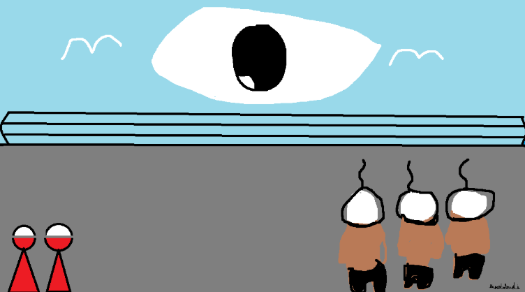 The eye is one of the ideas I wanted to add to the scene; it is meant to represent how they are always being watched in every situation. Similar to the idea of “Big Brother” and how he is always watching. I wanted to show how they are always being watched in Gilead by the eye from the sky. Just as there may be “Eyes” anywhere around them, they must always be careful of what they say and do.