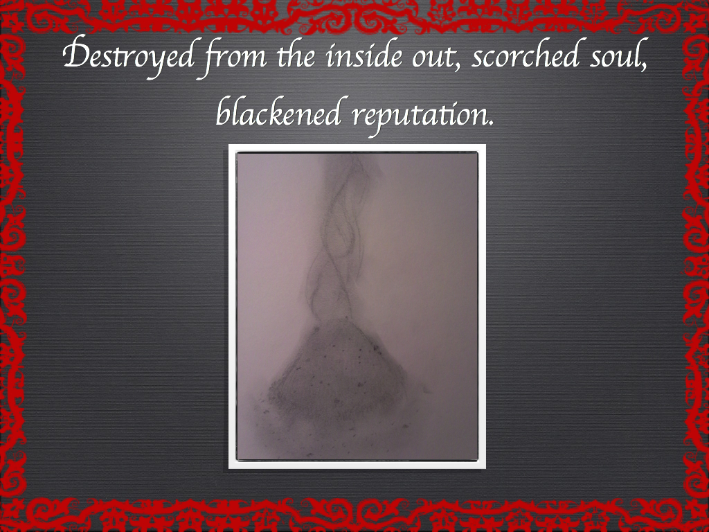 El hombre en la obra es el ángel deshonrado. Él tiene colores apagados. Como lo veo yo, los colores simboliza un hora obscuro por los humanos. Las alas de metal simboliza la manera que la caída de el ángel obtuvió. Los diseños magníficos en las alas simbolizan la complejidad de vida por los humanos en el mundo viejo. Las alambres en el cuerpo simbolizan lo que paró los humanos en la meta de ellos obtener paz por el mundo. La metal en la cabeza simboliza la manera los humanos pensaron; los humanos crearon que machinas y otras complejidades ayudarían en sus metas.