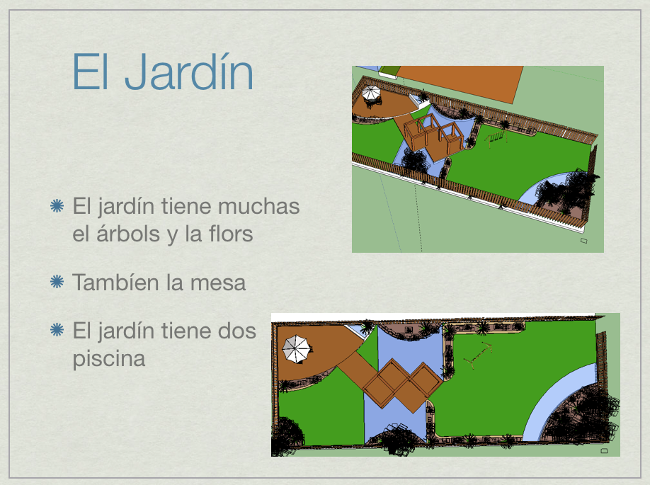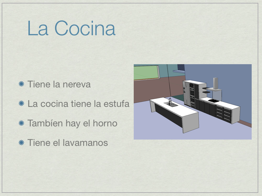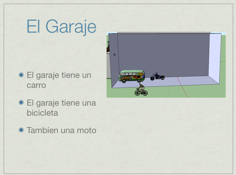La cuy le dice al papá, " camina la parque con tu familia." La familia camina hacia la parque con la cuy.