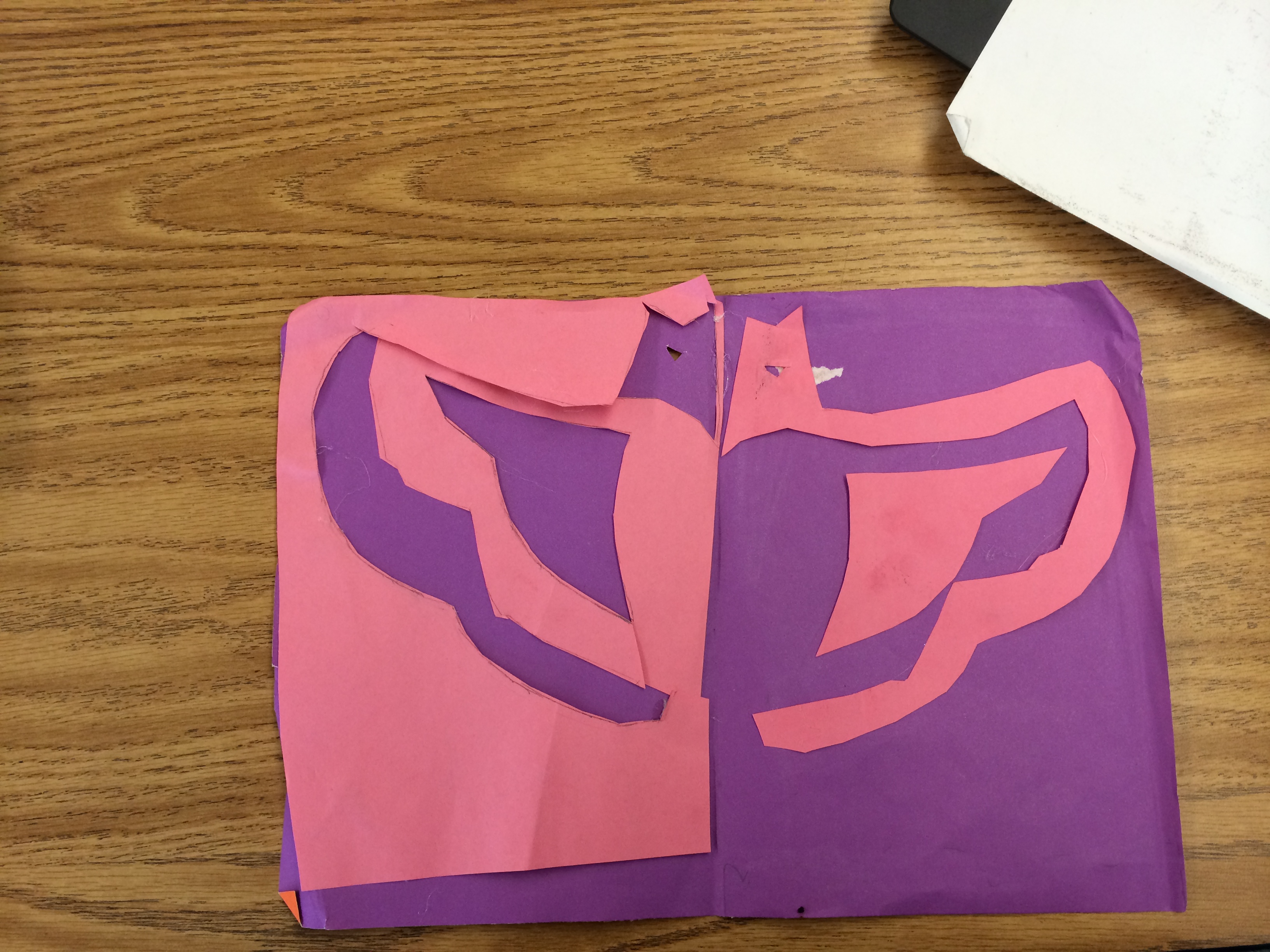I found negative space in my cut because I had two different colors and the purple was the space in the background. In the stool drawing the white space surrounding the table,stool and plant.
