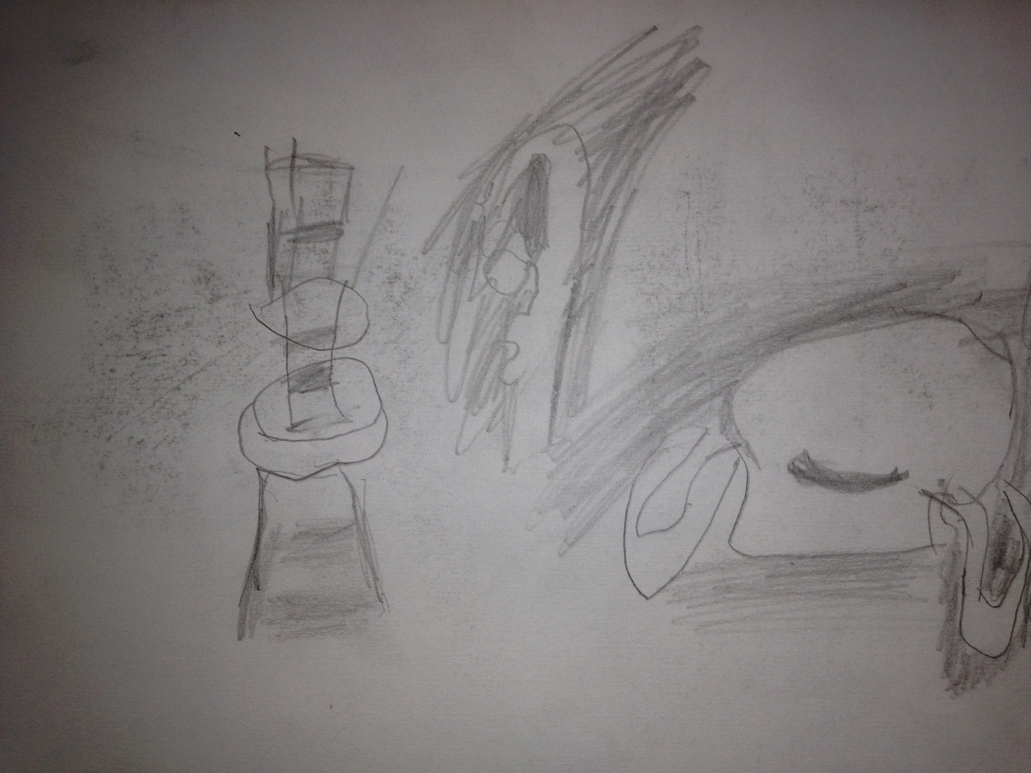 I found negative space in my cutout by looking at what was cut out and doing the inverse. I found negative space in my still life drawing by looking at the solid lines and drawing around them.