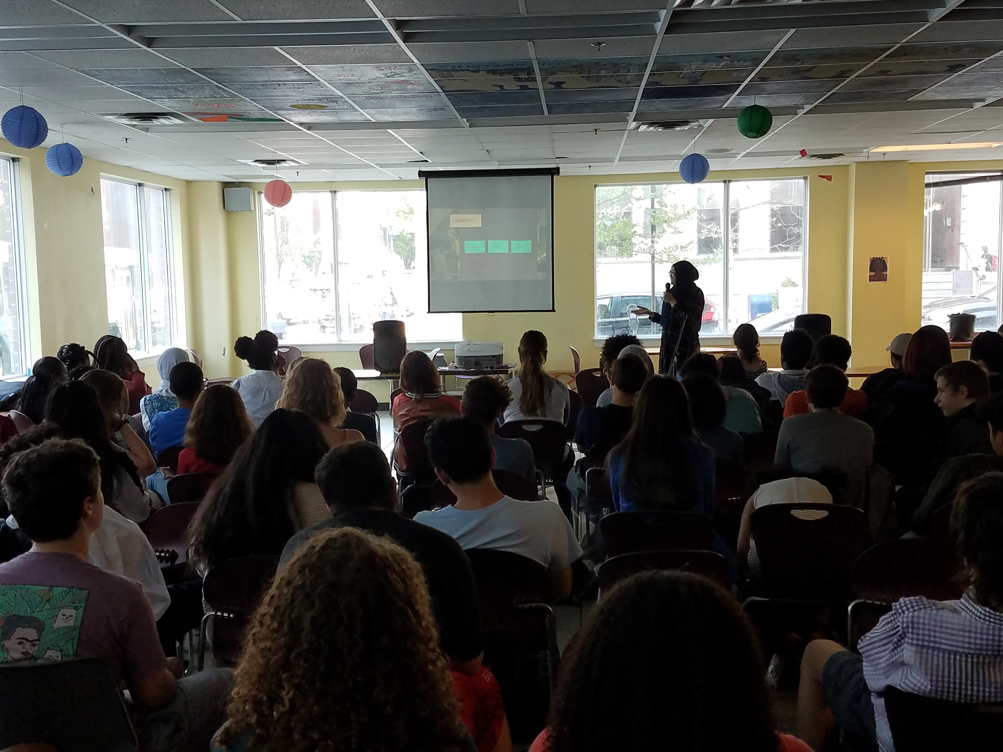 ¡Hola! Somos Asher Swartz, Tajnia Hussain, y Joseph Lee, y somos en noveno grado. Somos estudiantes de Science Leadership Academy, o SLA. SLA es una Filadelfia imán escuela. Está en centro ciudad Filadelfia, 55 Norte 22 Calle. Está cerca de Arch Street Gourmet, Trader Joe’s, y 7-Eleven. ¡Comida! SLA es muy divertidos, y un poco extraño. Hay muchos estudiantes cómicos. ¡Es súper genial! Hay aproximadamente 500 estudiantes en la escuela, casi 120 por clase. Tenemos cinco pisos, y muchos profesores. Tenemos deportes diferentes, corremos en las carreras, leemos y escribimos poesía, cantamos canciones y bailamos bailes, y dibujamos arte. Tenemos también tocamos instrumentos, trabajamos en proyectos, estudiamos para pruebas, y comemos durante el almuerzo. ¡Tenemos buenos niños y niñas equipos fútbol y equipo de debate (bastante bueno equipo de debate), y muchos más maravillosos equipos y clubes! ¡Asher participa en Ultimate Frisbee porque es tremendamente divertidos! ¡Tenemos un gran escuela!
