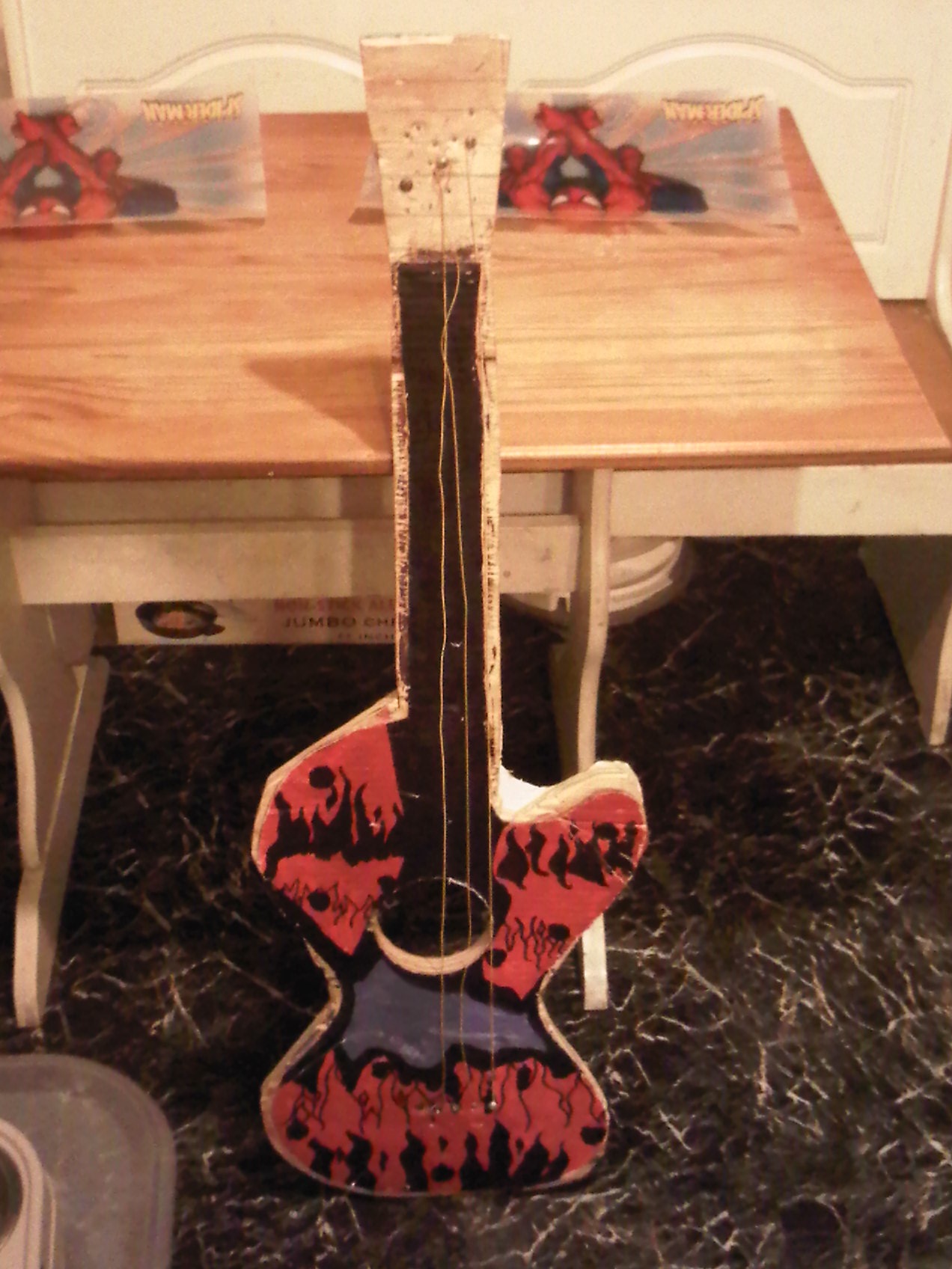 For this assignment, i didn't necessarily sculpture something. Instead, I built a guitar. I decided to build a guitar because I've always wanted to make one. There was some extra wood in my back yard from some work that my step father had done on our house. The week that the specific assignment was assigned is when I worked on this guitar. I had my bother help me make the guitar, and I let my younger twin brothers color it. Making this guitar was fun. I put a lot of work into making it. It sounded great when it was finished as well.
