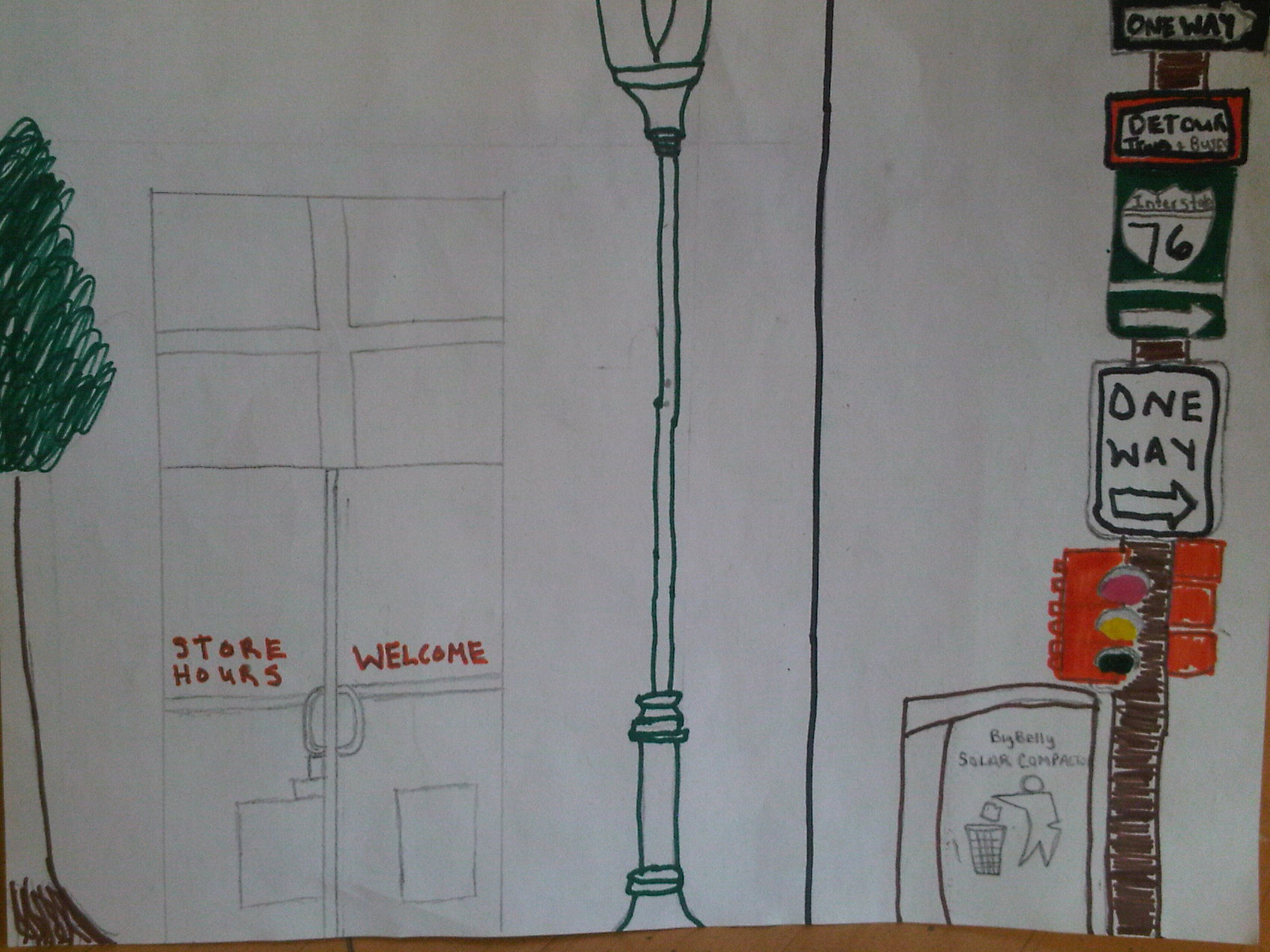 This drawing is my worst of the quarter. I actually forgot to do this drawing during the quarter, so I drew this just s I could have something to turn in. I attempted to draw the my observation of the store from across the street. There is no type of detail in this drawing, I was focusing on getting this drawing done more than actually turning in a piece of quality artwork.