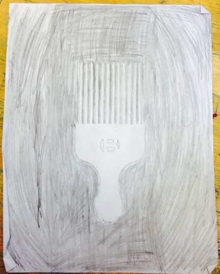 The cut out showed negative and positive space as different perspectives. The blue on the black switched to the other side and changed to a different perspective. When I drew the stool drawing ( hair pik drawing) I drew the outline of the hair pik and shaded the background a dark color to show the shape of the hair pik.