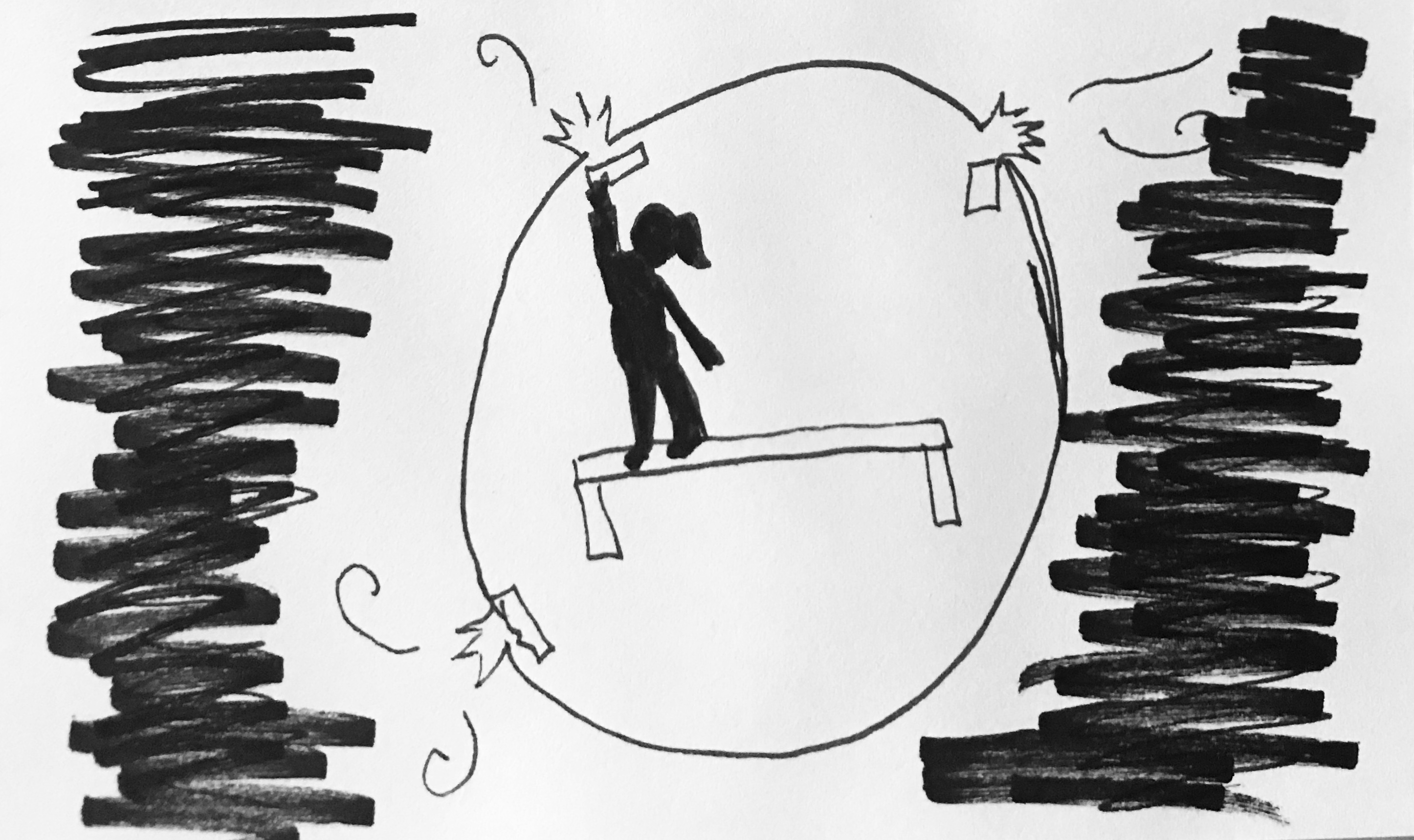 An image represents Anna in a spherical ball with holes it in, the air is leaking out of the ball and she is holding her breath, to symbolize that reality is hitting her, this memory is still stuck in her head, it’s not her choice to forget, this memory is not allowing for her to forget. She tries to build up this strong force around her and the image shows pieces of tape just attempting to patch up the holes and the damage.