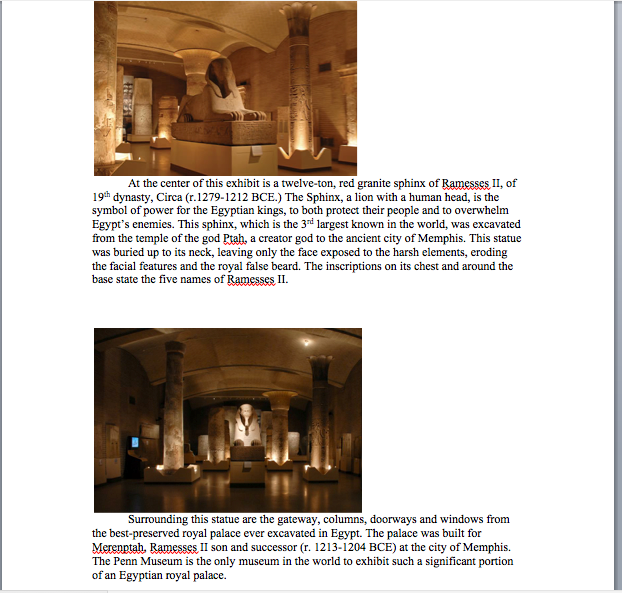 My capstone is an enhanced podcast tour of the Upenn museum of archeology and anthropology. My mentor gave the idea of a podcast to me after hearing my interest in archeology. By doing some community service At the museum I was able to get the information I needed to start the process. With the help of one of the workers there, Amy Ellsworth, I was able to get access to the exhibit and images for the enhanced portion of the podcast, an idea given to me by Amy herself. A script was written first with the information given then turned into the podcast.