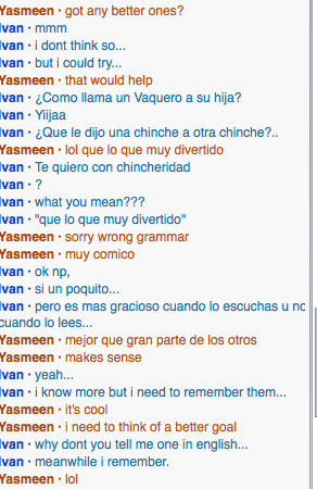 This blog post is a bit short since i was not able to talk to my person after it disconnected. But my goal fo this week was to find out how to ask about college and what someone wanted to do in their future it turned out quite well and i learned a bunch of new stuff. (It won't let me upload a screenshot just yet though..)