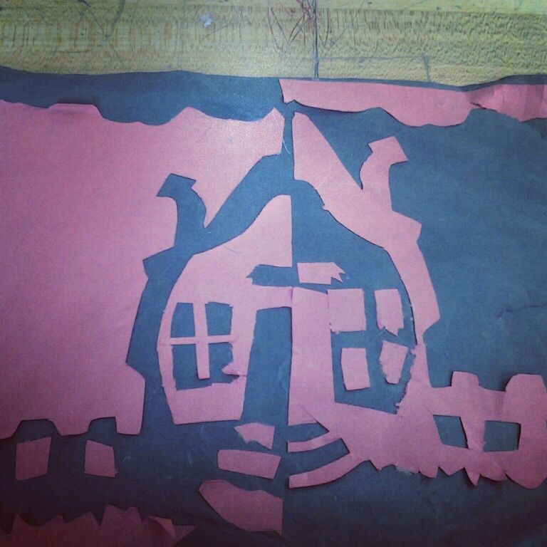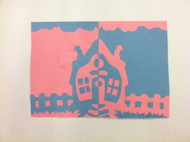 B. Explain how you found negative space in 1. your cut out? I found negative space in my cut out by seeing the outlining of my house and deciding was it the darker part or the lighter part, , 2. in your stool drawing I found the negative space in my drawling by seeing in between the stools and knowing that that was negative space.
