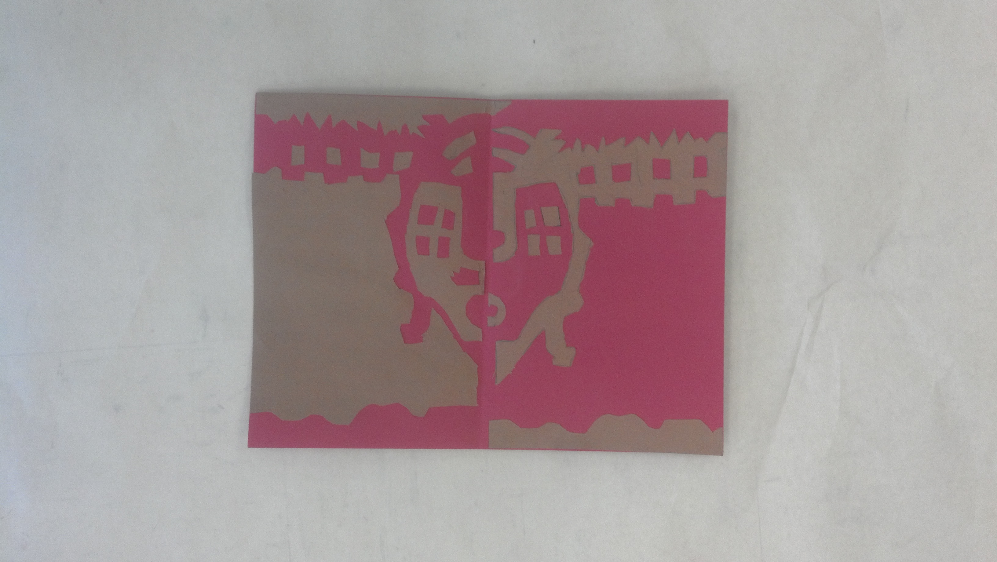 In the cut out, I understood that the certain color was negative space. On one side i used that as orange, on the other side, it was highlighted in the brown.