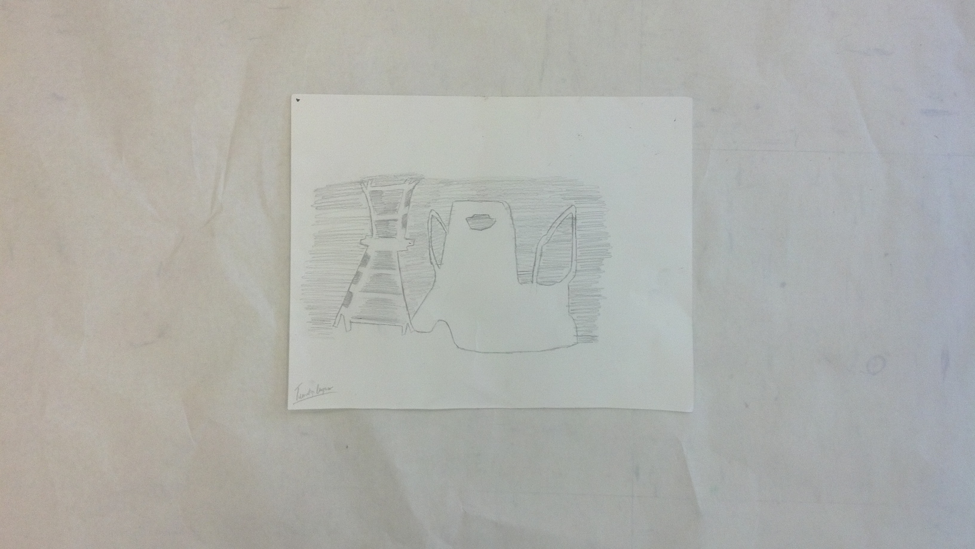 In my cut out I found negative space by cutting out the main parts of the bird, so the shadow can be easily revealed. In my stool drawing I made sure the negative space was found by using my black pencil to cover the unwanted areas and to draw more attention towards the center.
