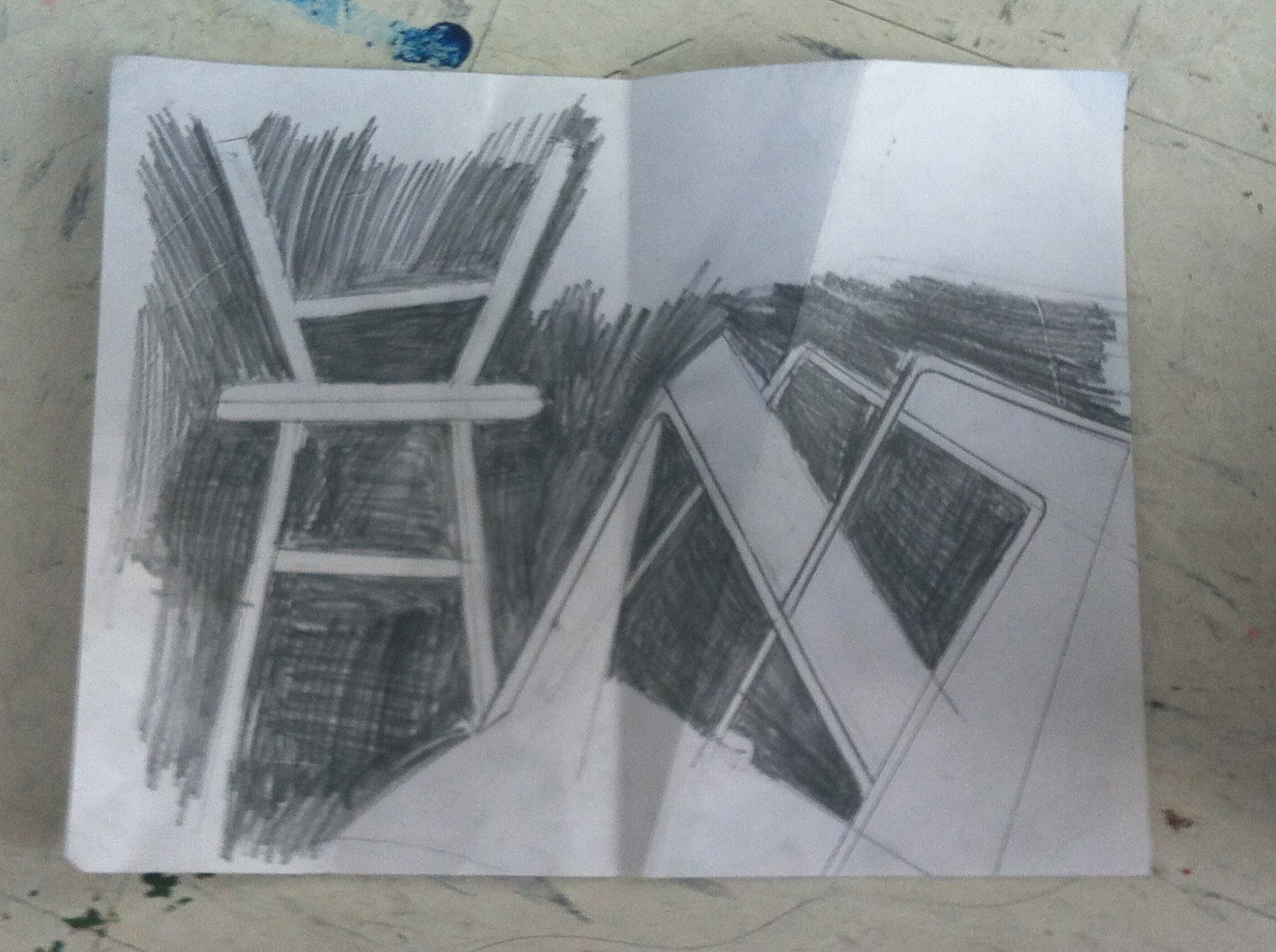 Here's the drawing of my mirror reflections shadow drawing and my stool shadow drawing: