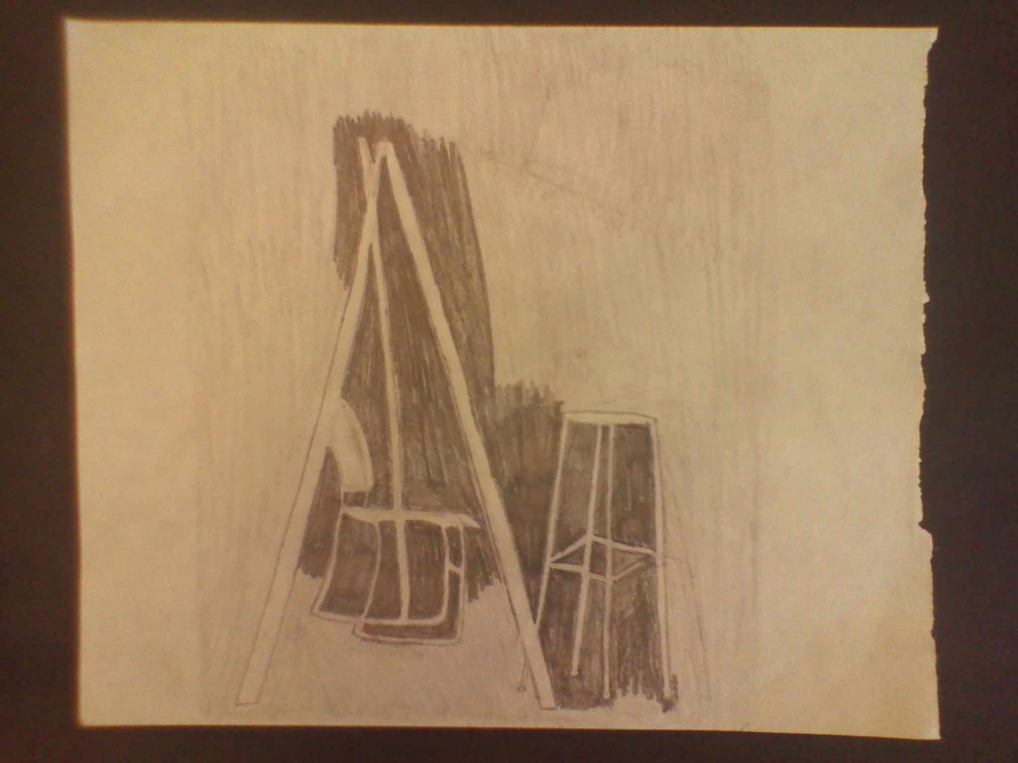 Negative space is the space around an object.B. Explain how you found negative space in 1. your cut out?, 2. in your stool drawing?