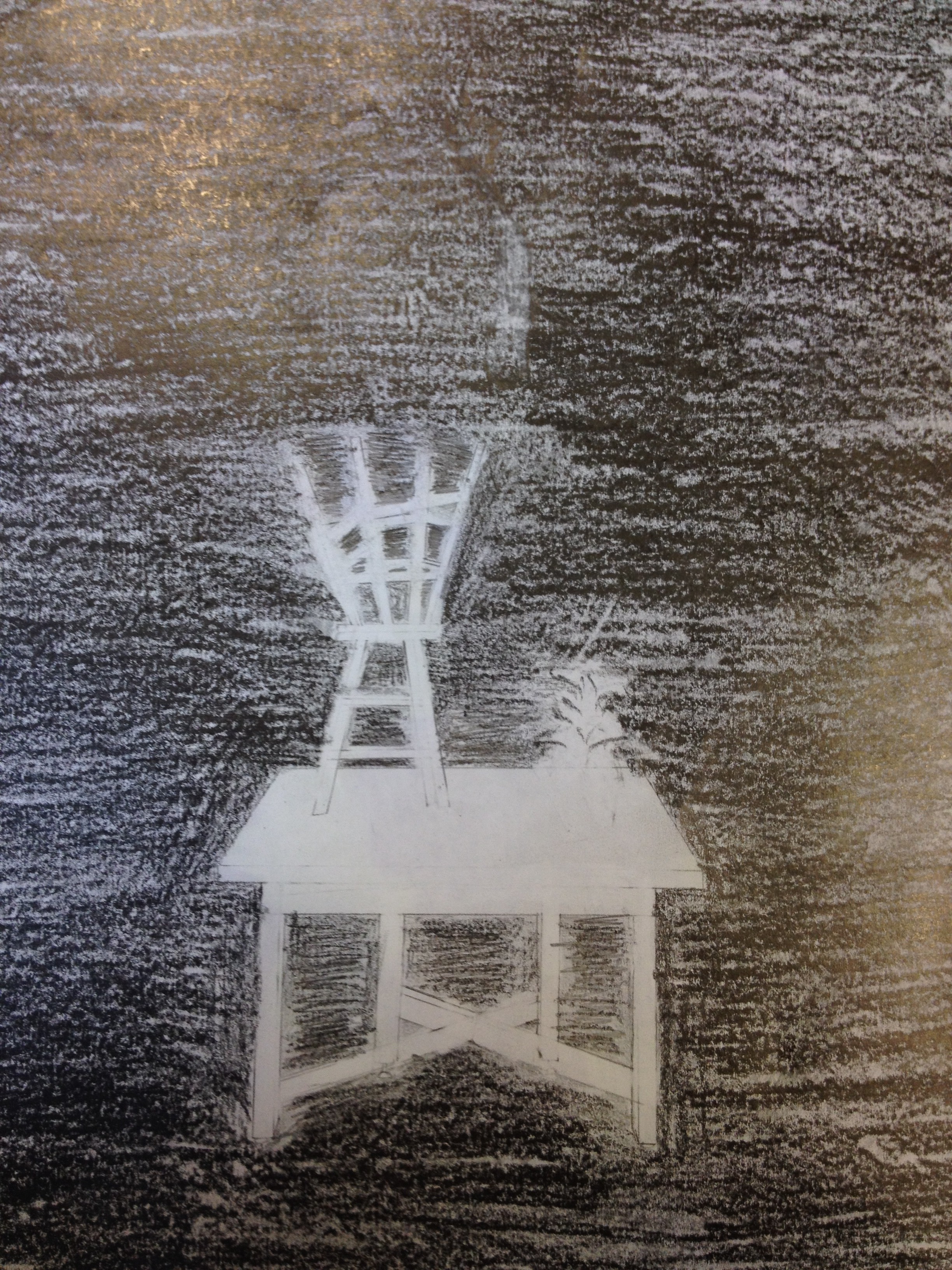 I found negative space in my cut out picture and in my stool drawing within the spaces in and around the subject. For the cut out piece I focused on the black and grey in the picture we were given. First, I cut out all of the parts of the picture of the house and traced them on one of the pieces of construction paper. Then I arrange the pieces that matched the black parts of the picture onto one half of my other piece of paper. Then, I arranged the remaining pieces that matched the grey parts on the second half of the full sheet of paper. The finished product was a picture of a house with the negative and positive space colors reversed on each side. Also, my technique for my stool drawing was that I shaded the entire paper and then erased the shapes of the subjects which were the table, stools, plant, and wire.