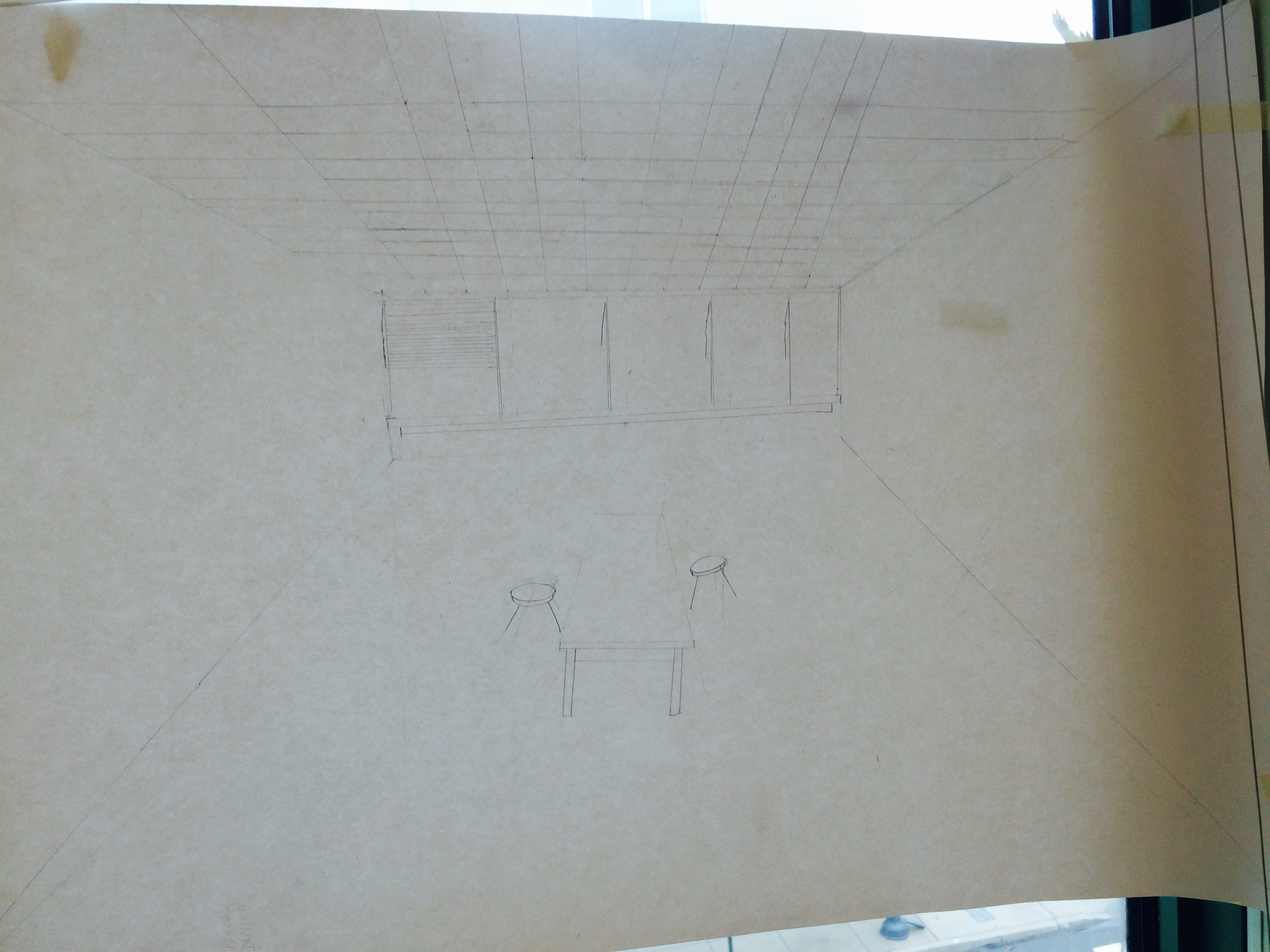 3.) I think that Tajnia's was the most successful one because of how much detail she put into the drawing. She shaded in the blinds and created an beautiful table. The stools were sketched but had an great originality to them. Nice project overall.