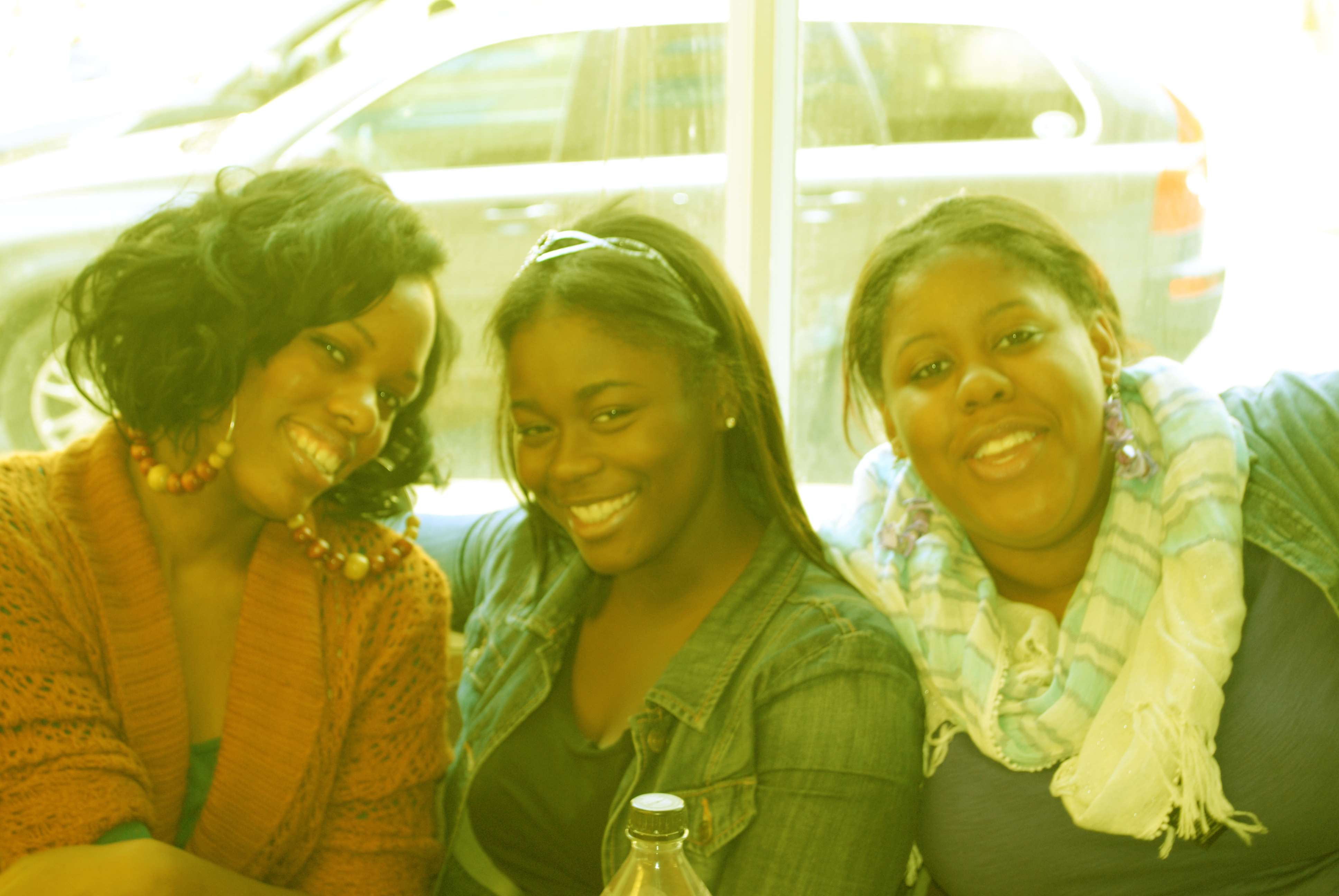 The third photo is a picture of my friend's Jareese, Sade, and Kyla at lunch. I liked the way the picture came out so I didn't want to do change it too much. I decided to just emphasize some of the colors in the photo. So I exaggerated the yellow and blues in the photo and it brought a glaze over the picture.