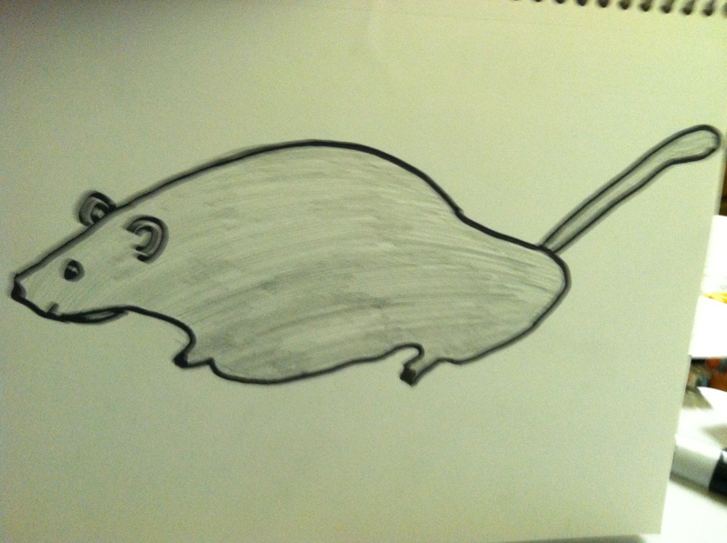 I often work with a lot of my art on the computer and when I get a change to actually work with my hands I love it. A really popular project this quarter for our class was painting a drop-down ceiling tile. I took a cartoon-like image of a cat that I doodled in my journal and drew it out on a ceiling tile. I used white paint and india ink.