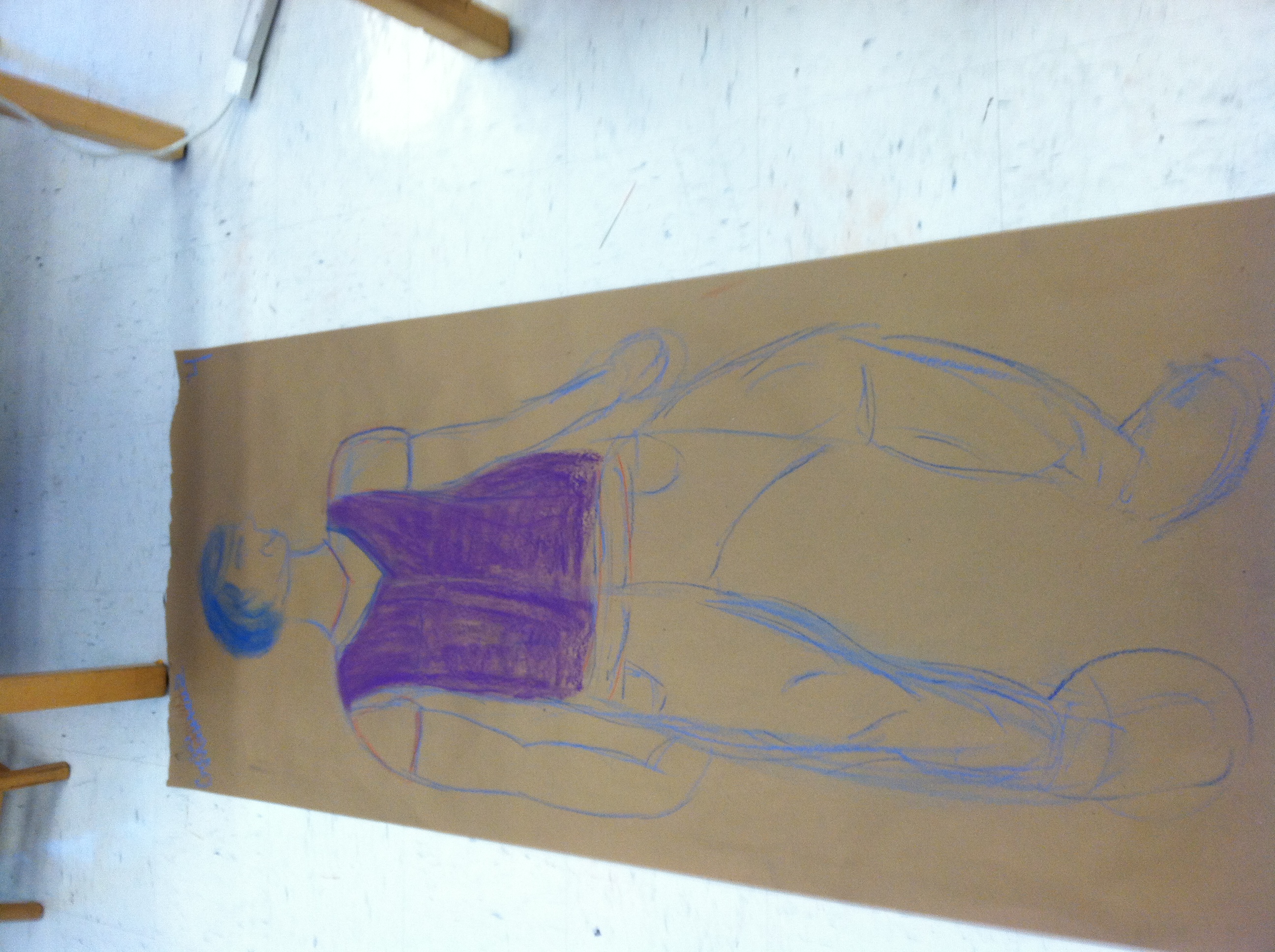 My second drawing was of the color wheel. I heard of the color wheel many a times but I never memorized the colors or the colors that mix to make other colors so this was like a refreshing course. I looked into it by going to read another book my teacher had called discovering the art history. I looked into this book and there I found where it was that I could go to find detailed information about the color wheel. So I drew that color wheel on a big piece of paper with pastels. Then we were asked draw a color wheel with only the primary colors so I did that also with some construction paper and pastels.