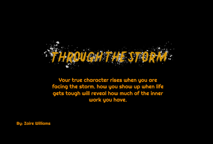 For my Capstone, I wanted to focus on something that I am very passionate about. Last summer, I went to Bloomsburg to stay with my brother and he showed me a store his friend owned with a clothing printer and different clothing people created adding their own logos. Just being there made me feel positive and motivated to contribute to what I experienced, So later on that night I pulled out my drawing book and got to work. After a couple of weeks, I came up with the idea of a logo called “Through The Storm”. “Through The Storm” is a short way of saying “Your true character rises when you are facing the storm. How you show up when life gets tough will reveal how much of the inner work you have.” My plan is to not just have a successful brand but also spread a message that reflects off of me that people can relate to. To promote my brand the SLA BSU gave me the opportunity to to do that by giving me $300 to buy the shirts, get them printed and letting their dance and step team wear my shirts during the BSU Gala performances. For there big help and care for me, I want to thank them all as a great team for letting me contribute to their amazing event. I do plan to continue my journey with “Through The Storm” and make many changes to my brand that will benefit me in my future.