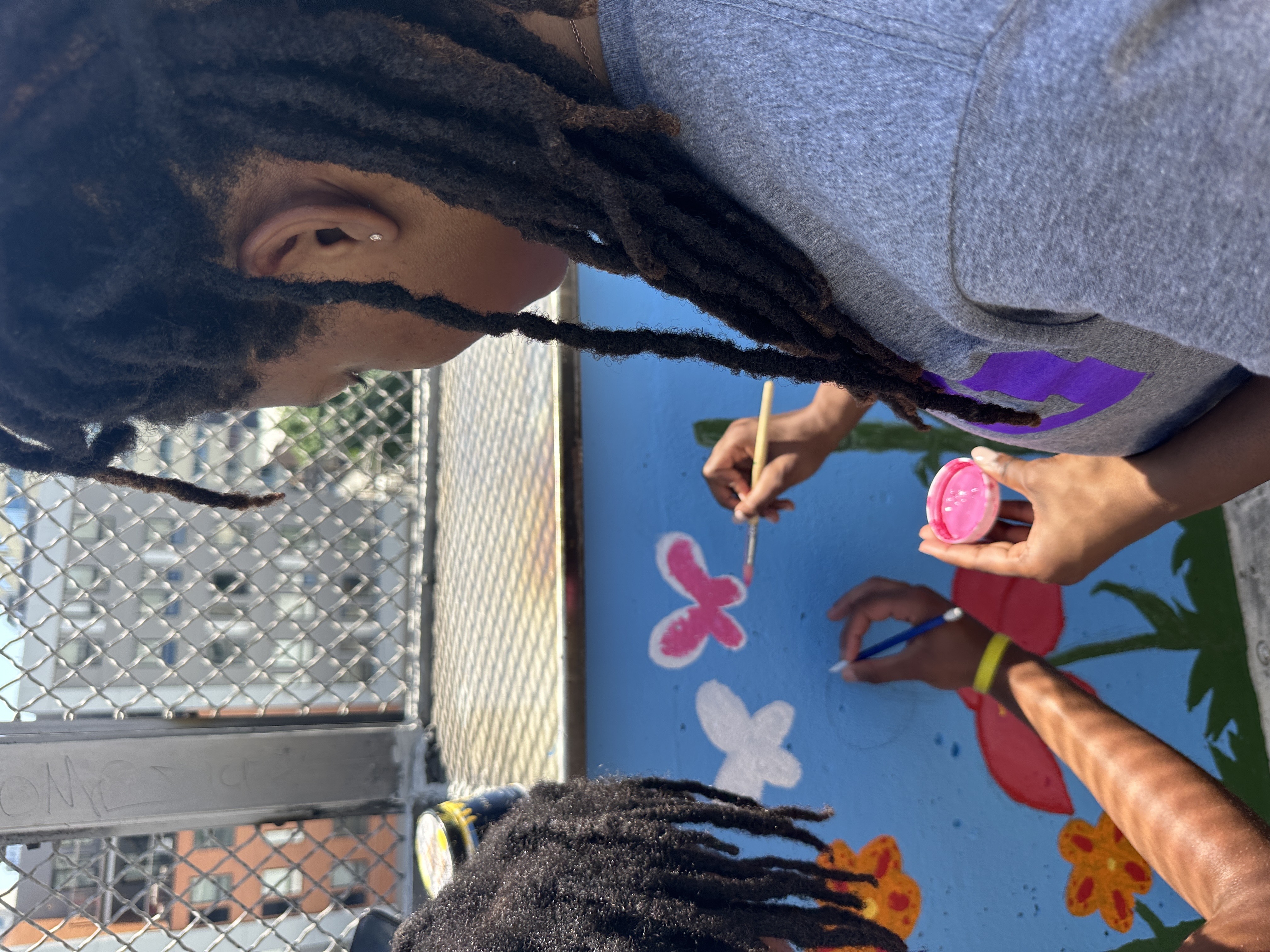 For my capstone, I painted a collaborative mural that allowed all students interested in participating to add their own unique touches and a lasting impact on SLA. Over the course of one week, I began painting this mural and had countless SLA students add their own additions and flowers to it. I began the entire process by hosting a “Plant and Paint” event with a few fellow students. Coming from an environment that hindered my growth and happiness, I came to SLA in search of an environment that not only challenged me but supported me even when school was extremely demanding. My mural is a perfect example of what it means to change your environment when it doesn’t allow for your own personal growth. I was able to create another space that supported students despite the academic demands of being an SLA student. I learned a lot about the positive effects greenery and just seeing flowers have on one’s mental health as well as the many negative and dangerous effects school can have on a teen’s mental health. I also learned more hands-on skills, like how much longer it takes to paint a mural than expected, as well as how to create large stenciling, even with limited materials. Overall, I am very proud of how my capstone turned out and can’t wait for future generations of students to benefit from the bright energy it brings to the outdoor terrace space.