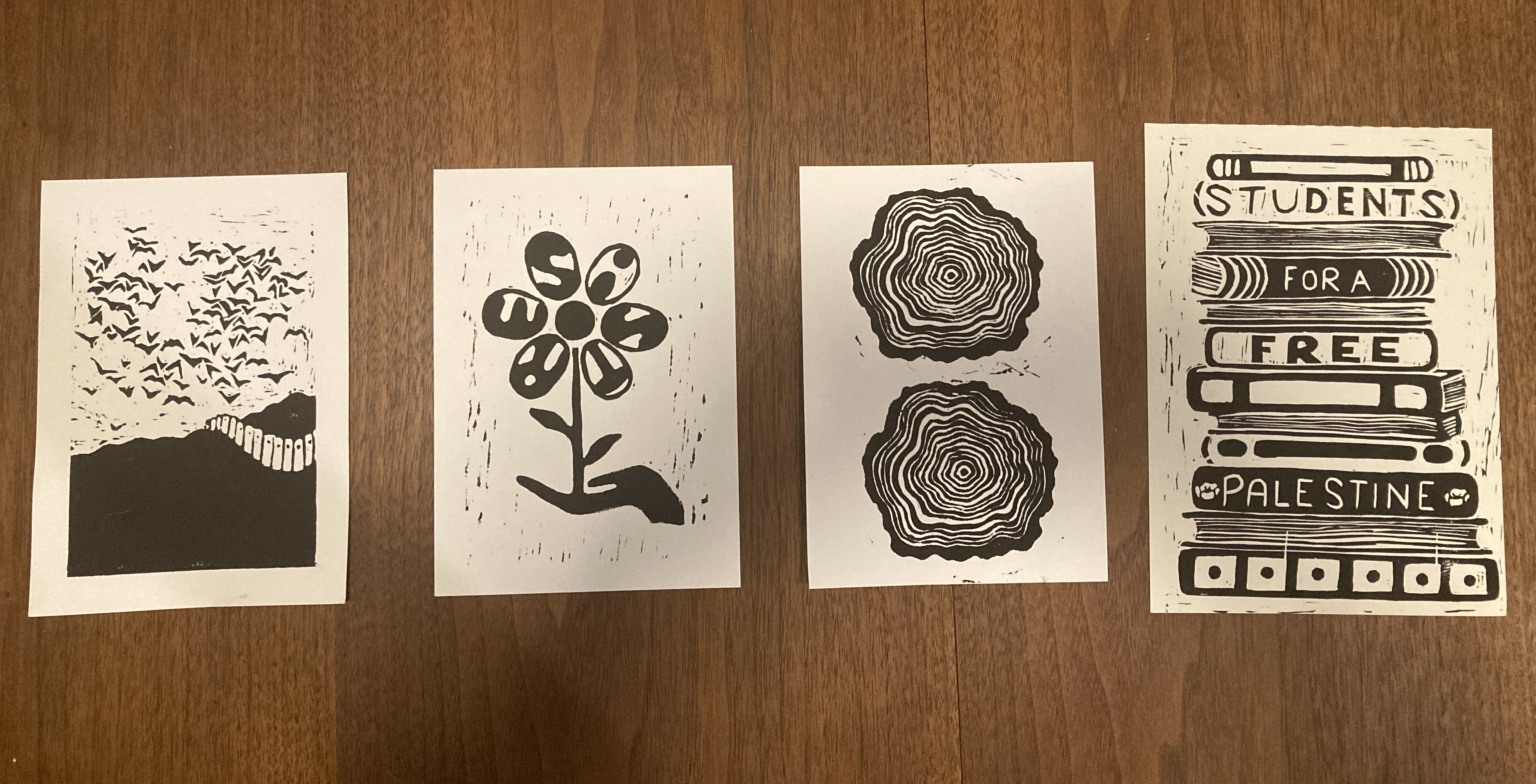 For my capstone, I researched the history of printmaking and its role in social movements. I then designed, carved, and printed my own linocut prints about the issues and movements I care about. I will be distributing copies of my prints, to friends and family, as well as around my neighborhood. I chose this project because I have a passion for printmaking, as well as social justice, and I was interested in seeing how they go hand in hand, in the past and present. I also wanted to learn more about printmaking technique, and be able to work on my printmaking skills in a fulfilling way. I’m really proud of my final prints, and I plan on continuing to make more prints and collaborate with other artists and activists in Philadelphia to make art for change.