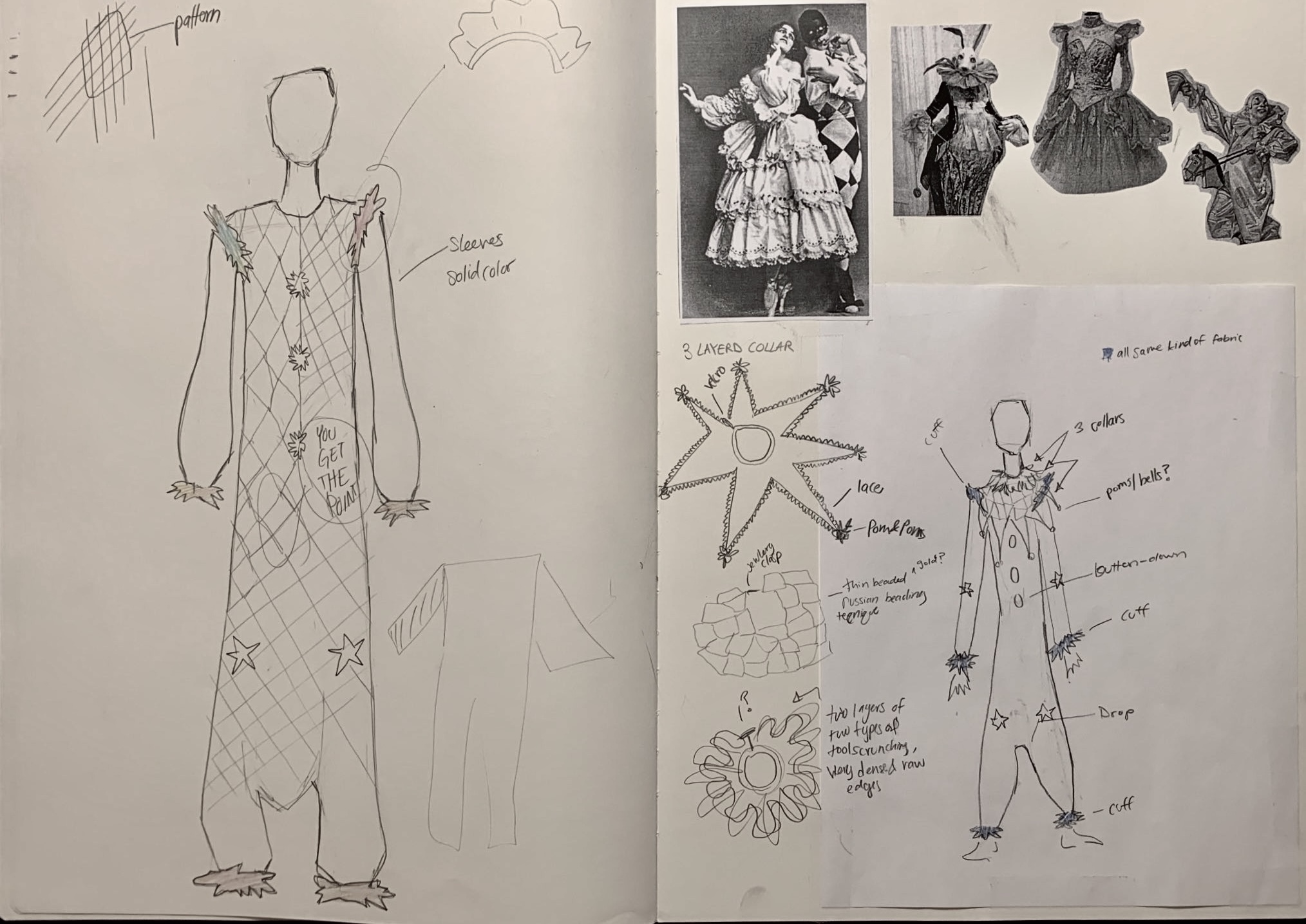 Due to overestimation of my ability to use time wisely, I was only able to complete about half of what I set out to do. I will be presenting two designs for a costumes as well as one fully completed costume. Through these designs you can see how they were made for their greatest advantage to be on screen.