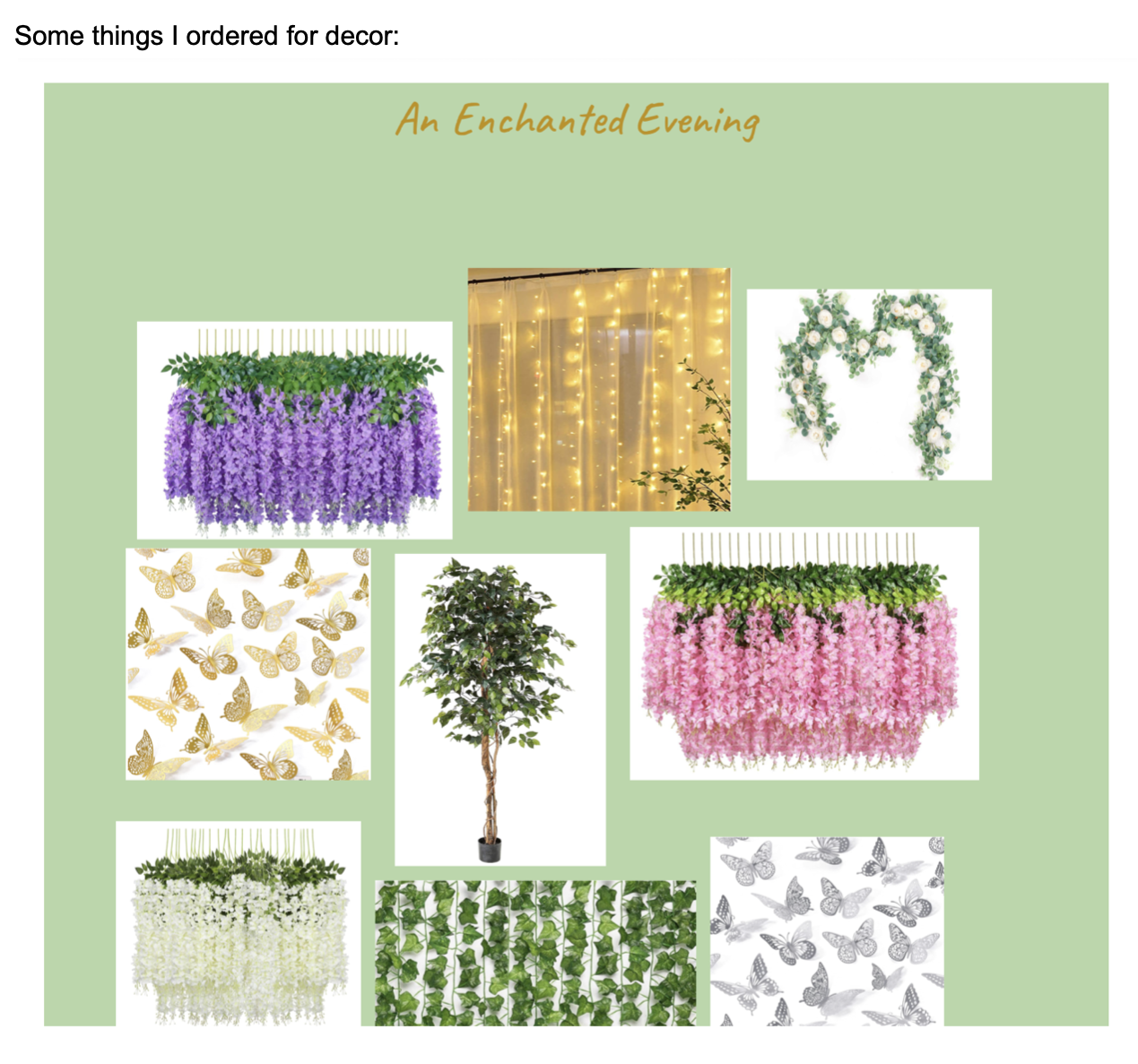 For my capstone project I started a prom committee so there would be decorations and a theme for the senior prom. This idea came to me during the summer last year and I thought it would be a really fun capstone project. Last year we didn’t get a junior prom due to covid and being online so I really wanted this to be the most memorable prom possible. I wanted to combine my love for planning and art through decorating to come up with a night to remember. I started off by making a presentation to pitch to Braskem in hopes of getting funds to decorate. It was a really amazing experience. In the following weeks to come I waited for news on whether or not I’d gotten the funds, and about 2 weeks later I was notified that I got the money I asked for and a mentor to help guide me. I’d meet with my mentor every once in a while depending on if I needed help. After this I started to plan meetings out for the committee. Unfortunately not too many people showed up the times I tried to have meetings so I ended up reaching out to my friends and other seniors that were interested in helping me with decorations. I already had a theme in mind from a “Prom decor” Pinterest board I made a while ago so it made it easier to decide. I also made a mood board of the things I ordered with the title “ An Enchanted Evening”. I also visited the venue to see where the decorations would go. There were some bumps in the road with the venue at times but everything worked out in the end. In addition to all this I also sent out a google form to gather songs from seniors so everyone could have at least one song they like played at prom. I’m still waiting for decorations to arrive but I have a plan for when they do and have support from friends, family, and other community members at SLA to help make this a memorable event for the seniors.