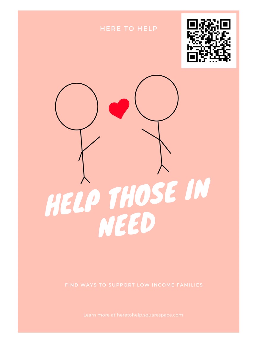 For my capstone project, I created posters and a website to help low-income families find the resources they need and to also get people to take action and give back to the Philadelphia community. The posters are meant to attract people to my website in the case that a student at SLA finds themselves needing these resources. I chose to focus my topic on low-income families because it affects many families and students in Philadelphia. Some families may not want to ask for help or may not know who to ask. My goal was to do research on resources that would be helpful for low-income families or SLA students. For example, bill assistance, food drives, affordable child care, how to apply for FAFSA, and ways we, as members of the SLA community and Philadelphia citizens, could help.